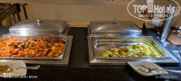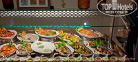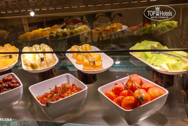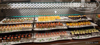 В отеле система «все включено» + местное вино, пиво, крепкие напитки. Первый египетский отель, где мы пили местное вино (практически всегда это что-то уксусно-неупотребимое). Оно было вполне достойное, и белое и красное. Завтрак, обед и ужин по расписанию. Выносить фрукты и выпечку можно без проблем. Так же, можно перекусить в баре у бассейна и после 16 часов на маленьком прилавке есть пицца и выпечка. Так как в первый день, мы пропустили обед, пицца и латте нас выручили. Отметим вкусный кофе в баре на бассейне. Выбор еды скромный, (смотрите фото) но все вкусное и всего хватает. 2-3 вида мяса, рыба (в основном филе пангасиуса), 2-3 гарнира, 5-6 салатов, фрукты, выпечка, напитки, отдельное место для детей. Одно из блюд на раздаче порционно - говядина, утка, индейка, курица. На ужин почти всегда что-то на гриле: -кебаб, курица, один раз в неделю ассорти из морепродуктов. Если что-то закончилось, то сразу же приносят. Отдельная станция для приготовления пасты. Из фруктов всегда: гуава, апельсины, финики, дыня. Два раза была клубника. Что выгодно отличает Шарм Риф от многих отелей, фрукты тщательно помыты и удобно нарезаны. Так же практический каждый день, на ужине, было маленькое представление от персонала: музыкальное поздравление с тортиком для гостей, отмечающих свой день рождения! Сладкий стол также даст фору многим пятёркам. При общении с шеф-поваром ресторана мы высказали пожелания об увеличении в меню позиций по рыбе и морепродуктам. Например, пару раз в неделю на порционную раздачу приготовить крупную рыбу или морепродукты.