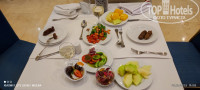 В отель приехали около 16 часов. Заселили сразу. Носильщик отнёс чемоданы. Номер 239 на 2-м этаже в корпусе на 8 номеров. Мебель и ремонт старые, но всё чисто, все работало. Попросили поменять постельное бельё (было серое с катышками и пятнами) - через 5 мин пришёл уборщик и всё сделал. В ванной комнате были шампунь, мыло и гель для душа. Остальное нужно брать с собой. Так же был старенький фен. если честно боялась им пользоваться. Напор и температура воды хорошие. Уборка каждый день. Замена полотенец, по необходимости,(оставляете на полу). Пляжные меняли по возвращению с пляжа, утром в 8 часов брали новые. Так же каждый день пополняют запасы воды (2 бут по 1,5 на номер.) нам вполне хватало. На территории отеля есть несколько бассейнов, но мы ими не пользовались. Предпочитаем купаться в море. Так же есть теннисный стол и ракетки. Рядом мишень для дартса. Иногда играли днем или вечером. Ракетки и мячик лежали рядом в деревянных карманах, дротики просили у аниматоров. Все в хорошем состоянии. Анимация есть - не навязчива. Вай-фай на ресепшн еле живой. Разговор в мессенджере не тянет. Только переписка. В основном расплачивались наличными долларами. Поменяли сто долларов на фунты в банкомате в галерее Эль Меркато напротив нашего отеля по курсу 47.4. Фунтами расплачивались, когда продавцы занижали курс доллара к фунту ( 47 и ниже). В основном считают 47,5 фунтов за доллар. Удачно купили клубнику в Манго-маркет в день отлёта в 10 утра по доллару за лоток. Её только привезли и маркет был практически пуст. В лотке грамм 800. Там же ранее делали покупки после ужина - толпы сумасшедшие. С ценами в Манго-маркет мутят. На коробке - одна цена, на кассе - другая (естественно выше). Потратили 10 минут, но своего добились. Будьте внимательны! Лекарства покупали в аптеке напротив - цены фиксированные в фунтах, всё по чеку. Банкомат в отеле выдавал фунты по карте Юнион-пэй Россельхозбанка. Выгодно снимать по максимуму - 4000 фунтов.