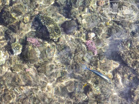 До пляжа пару минут на автобусе, который ходит строго по расписанию или минут 15-20 неспешной пешей прогулки. Так как погода была не жаркая, то мы не дожидались автобуса и частенько возвращались после пляжа пешком. Сам пляж не большой но чистый, матрасы и лежаки уставшие, есть поломанные , но можно выбрать подходящий. Особенно если Вы приехали с первым автобусом. Так как пляж платный для отдыхающих из других отелей, а из нашего отеля гостей приезжало мало, то свободные лежаки были в любое время дня. На пляже крупный песок, переходящий в мелкие камешки ближе к деревянному настилу. Как уже писали ранее, с маленькими детьми сюда приезжать не стоит. Вход в море по лестнице и сразу большая глубина. Мы выбирали отель именно из-за рифа, он живой, увидели много рыбок: огромные стаи цезио примо рядом с пирсом, поглубже яркие антиасы, черные групперы, пара каранксов, рыбы-попугаи, тилозуры, иногда заплывала барракуда. Гости отеля, отдыхавшие здесь в прошлом году, говорят, что раньше рыб здесь было больше. Вода была теплая, около 25 градусов. Плавать было приятно. Пару раз, ближе к обеду поднимали красный флаг, но после обеда, опять можно было плавать. Один день был очень холодный сильный ветер и красный флаг висел целый день.