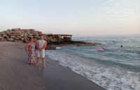 Заход в море плохой : плиты и камни. Без кораллок не обойтись. Мы первые пару дней думали : да ладно,фигня. Не. Не фигня. Как сшибло волной при выходе,да на камни,пошли и купили. Само море прекрасное, теплое и чистое,большая акватория для плавания,огороженная буйками. Посреди пляжа стоит пантон. Но он принадлежит другому отелю. Зоркий охранник никого на него не пускает из посторонних. Дети подплывают со стороны моря,чтобы понырять с него. Но охранник и оттуда выгоняет. Вечером вход на пантон баррикадируют. Всё это легко преодолимо ради красивых фоточек на фоне заката )))