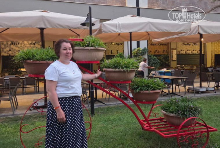 Отдыхали в данном отеле с 27.07.2025 по 06.08.2025, две семьи: мы с мужем и сын 9 лет, дочь с мужем. Бронировали два одинаковых номера Garden Room, находились в двухэтажных бунгало, далеко от ресторана и ресепшена, зато тишина ночью отличная. Перелет Турецкие авиалинии, повезло, без задержек и потери багажа, индивидуальный трансфер и через 40-50 минут мы были на месте. Отзывы читаем всегда заранее и конечно были готовы, что ресепшен представляет из себя шатер без кондиционеров, есть вентиляторы, но они просто гоняют горячий воздух, есть холодильник с водой, есть лимонадницы со льдом, стоит приветственное шампанское, но наливать нужно самим. Поэтому стиснув зубы заполнили карточки, попросили по возможности номера рядом и где потише. Приехали мы уже к ужину, кроме нас никого на заселение не было, прошло все быстро. Пожелания наши учли, отвезли на машине, занесли все чемоданы на второй этаж.