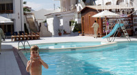 Сама территория отеля очень маленькая, зелени не очень много.Пляж чистый, но тоже скромных размеров, лежаки стоят в плотную друг к другу.Мы предпочитали загорать у бассеина.