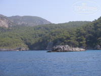 Ходили на яхте капитана Халила (кажется так его звали) на право по побережью в бухту. Красивейшее место, кажется не обитаемое. Купались на диком пляже. Вода чистейшая, пляж метров 20-30 шириной, под ногами валуны, подойти можно только морем, вокруг скалы. На нырялись, наплавались.