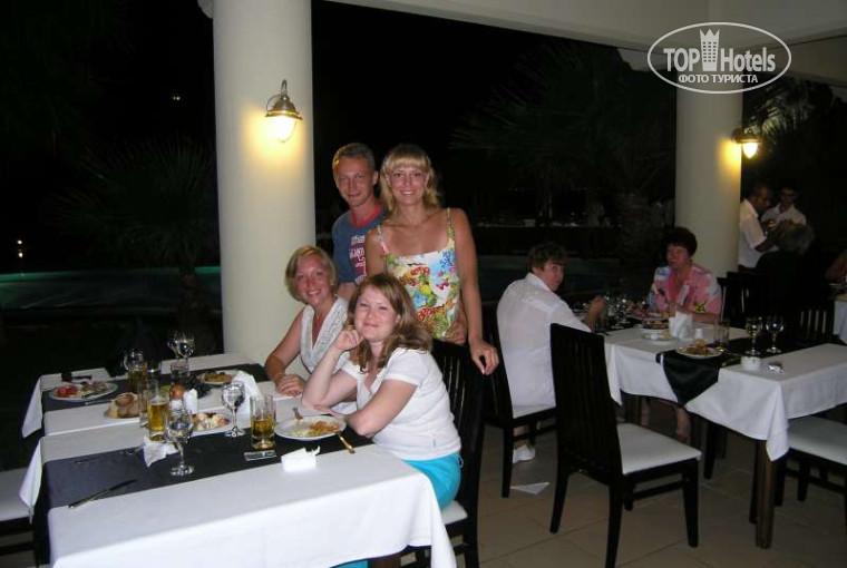 В здании отеля находится главный ресторан, можно кушать в помещении, можно выходить на улицу к маленькому бассейну, там тоже накрыты столики...Так же в здании, недалеко от главного ресторана, находится "круглый бар"... Работает от с 10 до 24 часов... Там можно выпить кофе, чай, спиртные напитки, делают разнообразные коктели...