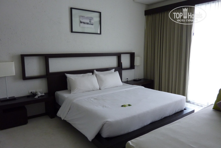 Необходимо отметить, что отель расположен на склоне холма, и подъем к нему с улицы довольно крут. Но не долог. Есть номера с непосредственным выходом в бассейн с балкона, однако не все они одинаково хороши. Наблюдал, что окна в номерах с выходом в общий бассейн, людям приходилось зашторивать от любопытных взглядов купающихся.