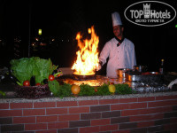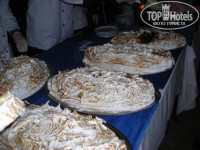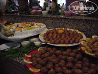 Питание. Я вам настоятельно не рекомендую делать так, как сделала это я. Так как я жуткая сладкоежка, столь многообразные торты, пирожные, сладости не остались без моего внимания. В первые три дня я усердно поедала только их, но в последующие дни смотреть на них просто не могла))) Так что не наедайтесь сразу. Как я уже сказала, сладостей было очень и очень много (см. фото). Было много разной зелени, в общем, салат себе можно сделать самому. Вообще, я к еде не придирчивая, ем всё, что дадут, так что мне было вообще прекрасно. Но к концу отдыха всё-таки немного надоели их блюда, специи, соусы... Я так скучала по маринованым огурцам и селёдке! Был один случай, когда в баре собралась вся наша компания. Все заказали себе по виски-кола, а мне попросили принести просто колу. Официантка принесла всё в одинаковых стаканах. Мы долго определяли общими усилиями, где же находится эта кола :))) Но в итоге точно определить не смогли, до сих пор не знаю, что я пила))