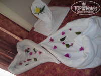 Уборка. Все два номера были ухоженые, чистенькие. Ничего нигде не ломалось, не портилось. Убирали раз в два дня, мы оставляли поощрение уборщице в виде 1$. К сожалению, про смену полотенец сказать не могу, т.к. не помню. Очень часто нам крутили всякие фигуры из полотенец, ложили цветы. Один раз был случай, мама оставила ночнушку на кровати. Пришли из бассейна и увидели, что из ночнушки сделали красивую фигурку.