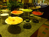 Обильные. Шведский стол. У нас проблем с едой не возникало вообще. Всегда есть два вида риса, картошка, 4 вида горячего (морепродукты, мясо 2-3 видов, рыба) с соусами разными, суп (мисо, рисовый и тд). Салатов как таковых нет, но можно отдельно взять нарезанные огурцы, помидорки. Салат, перец и еще какой-то овощ, названия которому я не знаю. Фрукты были всегда: папайя, арбуз, дыня, бананы, мандарины, яблоки, ананасы (по 4 разных вида фруктов в разные дни). Ну и всякие яичницы/йогурты/булочки и тд, в большом количестве. Чай. Кофе, сливки… Были еще напитки типа местных соков (яблоко, гуава, апельсин,ананас). Не свежевыжатые, но и не разводные Юппи. Нам скорее показалось, что это соки из пакетов, как у нас в магазинах, только натуральнее. Что в общем-то очень неплохо.