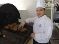 Приехали в 9 утра, оформились на ресепшн, покушали в столовой, немного погуляли по холлу и получили ключи от номера; в общей сложности у нас ушло минут 40 на это всё, устать от ожидания не успели. Номер нам достался на 3 этаже с видом на частные дома, слева -горы, справа -море, мы остались довольны (для семей с детьми - хороший вариант в плане спокойствия). По поводу слышимости - да, есть такое дело и соседей слышно и шум проезжающих по дороге машин, но когда хочется спать - сами понимаете - это всё мелочи, поэтому зацикливаться на этом мы не стали. Номер вполне уютный, чистый, любят турки нашу водку - это правда! Так что вместо баксов за уборку вполне можно расчитаться советской чекушкой! :-)