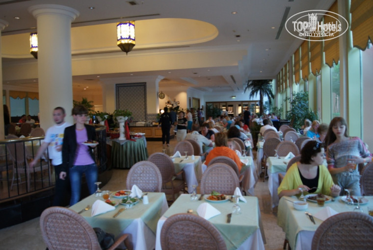 2. Еда изумительная. Тут многие пишут, что мяса маловато, но посудите сами. Баранина на косточке (самая вкусная), несколько видов гуляшей как с бараниной так и говядиной, так и с курицей. Курицы еще вида 3-4, из рыбы несколько блюд, по вечерам барберю (при Вас готовят на огне) из баранины, рыбы, курицы - очень вкусно, особенно баранина. За барбекю бывали очереди, но только потому, что когда заканчивалась партия, новая ведь должна прожариться, а народ стоит и ждет когда она дожарится)) Я занимал очередь, шел ужинать, когда видел что начали раздавать, подходишь и очередь исчезает за 2 минуты. Рано или поздно но хватало всем, уже ресторан закрывался, а шашлычок оставался.