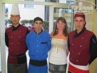 Служащие отеля все очень приветливые и улыбчивые. Мустафа на рецепшене достаточно понимающий. Ахмед очень классный! Официанты милые- всегда улыбались и быстро убирали со стола.