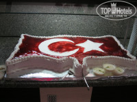 Питание было отличным! Можно найти блюдо на любой вкус. Много овощей, каждый день давали какие-либо фрукты: апельсины, грейпфруты, мушмулу, яблоки. Клубнику за 2 недели дали всего 2 раза. На завтрак можно было взять горячую яичницу, пончики или блинчики. Каждый вечер жарили что-нибудь на гриле: котлетки из баранины, курицу, несколько раз давали форель. Достаточно большой выбор десертов. На завтрак- консервированные персики, груши, вишня, простой рахат-лукум, халва, вкусное печенье. На обед и ужин- торты, турецкие десерты. В последний день нашего отъезда на пляже девушка пекла турецкие лепешки, очень вкусные! Из напитков- кофе, какао в кофе машинах, чай разных сортов, сок (как будто разбавленный водой). В баре можно взять газ.воду, пиво, водку, ликер, джин тоник,... На пляже только безалкогольные напитки.