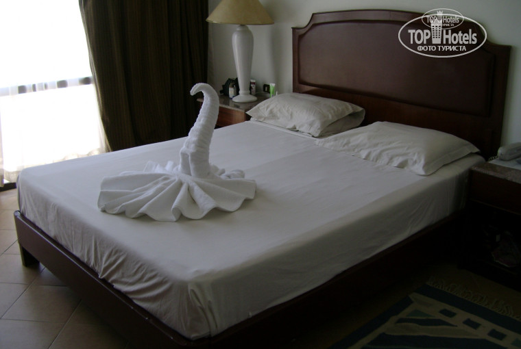 1) номер был с видом на море, мы такой и выбирали при покупке тура, в главном корпусе. Мебель приличная, кондёр работал исправно, вода была регулярно и без перебоев (как в душе, так и в мини-баре). Молодцы! ставим 5;