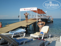 Пляж галечный, очень чистый, посторонние не пройдут. Шезлонгов хватало всем. С пирса вход в море для босоногих. У меня были специальные тапочки для плавания, галька не являлась помехой. После обеда, когда плавало мало людей, приплывали черепахи.