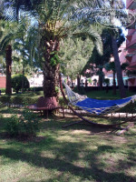 Ухоженная зеленая территория с минизоопарком - дети с удовольствием кормили павлинов и курочек. Детская площадка с небольшим колличеством горчек-качелей в тени. Персонал доброжелательный к отдыхающим любой национальности, неплохая анимационная группа.