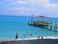 Отдыхали с 26.05 по 04.06.2011г. Добрались до отеля к 12-00, пообедали, разместили нас в 13-00 как и обещали, в ваучере у нас был стандартный номер, нас было 3 взрослых с ребенком, за 75$ предложили 2-комнатный сьют - мы предпочли остаться в стандартном номере и не пожалели - дополнительные кровати ни чем не хуже основных - большие и мягкие. Убирали в номере каждый день, полотенце меняли, если их бросали на пол, шампунь и мыло было в дозаторах на стенах. Пляжные полотенца можно было менять хоть каждый день. ЖК телевизор с 3 русскими каналами, мебель красивая и в хорошем состоянии. Ресторан у отеля один (Ala cart - это зарезервированный сервированный столик в основном ресторане с платным обслуживанием), обслуживание в ресторане отсутствует - ничего не приносят, только убирают. Столики на улице отсутствовали, а жаль ... Питание всем понравилось - все вкусно и разнообразно, мясо присутствовало каждый день в 2-4 видах (пробовали: телятину, индейку, курицу, баранину-шаурму), из фруктов были: яблоки, апельсины, грейпфрукты, лимон, арбуз, зеленая алыча. С 12-00 до 13-00 часов бесплатное вкусное мороженое у бассейна (если не лень стоять в очереди), в снек-баре можно было подкрепится гамбургерами, пиццей, спагетти и турецкими лепешками. Спиртные напитки и безалкогольные коктели местного производства нас полностью устраивали - молочные коктели, вкусный джин, красное вино и пиво. Особенно полюбились - кофе из автоматов и пакетированный ароматизированный чай. Территория отеля ухоженная, обустроенная, много зелени, пальм и банановых деревьев; есть где поиграть детям(детский городок и домик - мини-клуб). Лежаков у бассейна хватало всем: у большого с горками и у второго корпуса, близ пляжа - там тише и можно спокойно понежится на солнышке. Команды аниматоров меняются - так что не успеваешь устать от однообразных конкурсов и шоу, отдельное слово об аниматорах "Матрикс" - это нечто... работали лениво, с явным недовольством, в ожидании смены. С появлением второй украинско-турецкой команды "Катастрофф" (Валерий,Ксюша, Нец ... и еще несколько замечательных ребят), жизнь отеля заметно оживилась - большое им Спасибо! Еще отзыв о Спа - центре в отеле (они просили его оставить) : цены завышены (40$ комплекс, 20$ - хамам, пилинг и пенный массаж), впечатление отрицательное (есть с чем сравнить). ДЖАКУЗИ в отеле ПЛАТНО - вопреки заявленному. Пляж небольшой, есть тенты от солнца, лежаки на двух уровнях и пирсе. Вход в море каменистый, но можно воспользоваться специально оборудованными спусками с перилами или спуститься по лесенке с пирса. Вечером после шоу-программы можно посидеть в баре у бассейна или в лобби-баре в отеле , или сходить на дискотеку в отеле. К недостаткам отеля можно отнести разве что удаленность от общественно-значимых объектов (особенно негде погулять - окраина Бельдиби). Общее впечатление от отеля и отдыха положительное. Отдельное спасибо компании TUI- Мостревел - отельному гиду Елене, "Магазину горящих путевок- Липецк " - Суровикиной Вере !!!