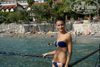 Море чистое, пляж галечный, ногам больно по такому ходить, а в море вообще булыжники! Сам пляж маленький, берег высокий, все как на фото, ничего не изменилось. Лежаки нужно рано утром занимать, возле бассейна хороших мест уже утром нет!