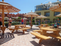 Отдыхали в этом отеле семьей и друзьями. Понравилось почти все, сами просто еще люди позитивные. Если обращать внимание на все недостатки и мелочи, то настроение конечно же можно и испортить. Расселили нас достаточно быстро, хотя многие пишут, что очень долго приходится ждать. Никаких 10 $ купюр мы не вкладывали, хотя говорила мужу об этом. Попросили что бы номера с друзьями дали поближе, а дали два рядом почти у моря, третий напротив главного бассейна. Ну ничего мы не расстроились. Хочу сказать на счет питания. Первые дни казалось елось норм., потом еда стала очень быстро надоедать, кажется всего много, большое разнообразие, ну как то все не вкусно что ли, хотя и приходишь достаточно голодным. Картофельного пюре за 10 дней так ни разу и не увидели, в основном запеченый. Персонал достаточно услужливый, по крайней мере нас не обходили стороной. Поразило большое количество немцев, особенно их речь, уши резало. За все время ни разу пьяных в стельку русских не видела, зато поразил немецкий "товарищ", который часто попадался нам в угаре.