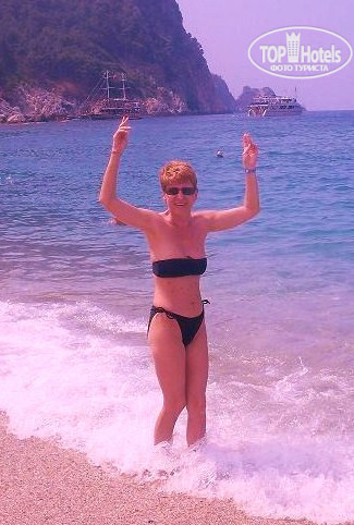 Только в этом году впервые туда приехали российские туристы. Отель небольшой, 7 этажей городского типа с небольшим бассейном, то есть своей территории у него нет. Это и не нужно, т.к. он находится в самом центре города. До пляжа 5 мин. пешком и столько же времени до центра с причалом и множеством развлечений. Пляж Клеопарта считается самым лучшим пляжем в Турции. И это правда. Мелкий песок и чистое изумрудное море без медуз. Правда, шезлонги платно 5 дол. Можно загорать на полотенцах около моря. Рядом находится небольшой симпатичный парк, а напротив есть пещера со сталактитами (вход 3 дол). Интересно. Около пляжа видна гора, на которой расположена крепость Аланья. Зрелище потрясающее. При желании можно из центра города ее посетить через красную башню (пешком минут 15 через кафе, магазины и мечеть). Отдельно о магазинах. Такого количества кожи, дубленок, сумок, обуви и по таким смешным ценам мы не видели в Москве нигде. Обязательно нужно торговаться, занижая цену раз в 10!!! На цены на ярлыках не смотреть.