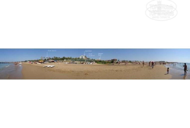 Отдыхали вдвоём (мне 52 года жене 44) в Diamond Beach в конце августа начале сентября 2006 года. Отель выбирали исходя из требования, чтобы был песчаный пляж, чтобы было не шумно и хорошее питание. В Турции первый раз, до этого только Крым. Сначала отрицательные стороны. По-русски никто не понимает, 90% отдыхающих- немцы, на ресепшине с большим трудом объяснился на английском, сотрудник отеля язвительно задал вопрос почему у меня такой плохой английский. Достался мансардный номер под крышей. На потолке в номере есть такие скосы, на фото их видно, пару раз приложился головой. Кондиционером в номере управлять нельзя. Его можно включить только если в данный момент он включён где то централизованно. Выключить- всегда. Днём его включали после обеда на несколько часов и вечером до утра. Время включения может немного изменяться. Были моменты, когда с открытым балконом спать было жарко, а если включить кондиционер, то под тоненьким вафельным одеялом прохладно. Попросили второе одеяло, сразу дали, но после уборки и смены постельного белья опять забрали, просить одеяло ещё раз у горничной не стали, а чтобы не мёрзнуть укрывались дополнительно покрывалом. Или спали с открытыми балконами ( в торцевых номерах их два, кстати, только эти номера выходят на море ), благо никаких комаров не было. Маску и ласты брать с собой не имеет смысла, под водой лунный песчаный пейзаж, никаких крабов. В Крыму можно было поймать краба побольше и с ним сфотографироваться. На этом отрицательные стороны заканчиваются.