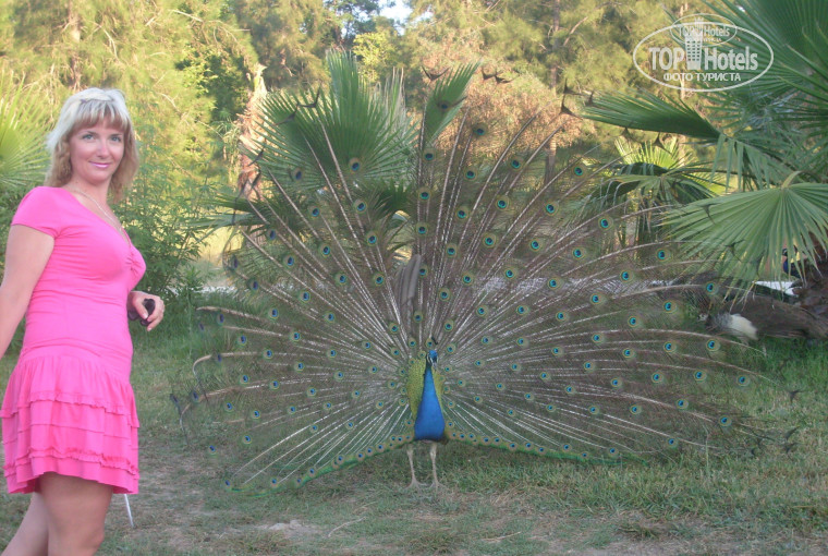 Территория большая, вся в зелени, можно фотографироваться под каждым кустом. Птицы по утрам поют на все голоса, и чувство что ты в раю. Павлины с рук едят.