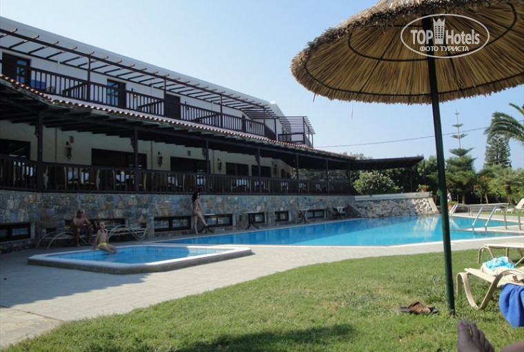 Отдыхали в данном отеле в июне 2011 года. Отель очень понравился и по обслуживанию и по питанию, убирались каждый день, оставляли на кровати горничной по 1 евро, у нас были завтраки и ужин ( видимо как у всех русских в этом отеле). Завтраки очень разнообразные и йогуртов много, и омлеты и яйца жареные и вареные, и овощей много сосиски, выпечки тоже много. На ужин тоже большое разнообразие, мясо с рыбой меняется через день. На экскурсии от туроператора не ездили вообще, брали машину на прокат два раза, ездили по острову. Обедали в кафе рядом с отелем, одно как выходишь на право, пара минут проходишь, там не плохая еда , сразу вам пекут хлеб, дают всякие штуки чтобы его мазать, после основной еды приносят бесплатно бутылочку раки (водка их) холодная(150 гр), и десерт. Ещё ходили в кафе налево из отеля идешь по основной дороге минут десять, наверх, у них на территории ещё небольшая яхта или катер стоит, там очень вкусно готовят, есть русская официантка, рёбрышки бараньи очень вкусные стоят 8.5 евро ( с овощами и картошкой), десерт тоже бесплатно иногда. В кафе везде пили вино домашнее очень вкусное. В магазинах рядом покупали на пляж черешню, клубнику, арбуз. Ходили вечером в Херсониссос, гуляли там много всяких кафешек, магазинов. В интернет можно выйти в отеле в здании где ресепшин, есть wi fi. Есть компьютер который работает на монетах 1 евро 10 минут. В городе 1 час 1-1.5 евро.