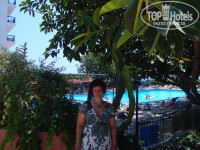 До центра идти тоже недалеко. Плюс магазинчики и кафе начинаются минут через 5 ходьбы, а сам центр ничем не отличается от улочки с магазинчиками, которая ведёт к нему от отеля)) Гулять там одно удовольствие. А если надо чего-нибудь из продуктов днём купить, то 2 продуктовых (сувениры и всякие крема, масла и т.п. есть в них, просто за сувенирами лучше в большую лавку идти) есть прямо перед отелем (буквально 2 минуты медленным шагом). Кстати, кефир и некоторые другие продукты в них на порядок дешевле, чем в супермаркете в центре. Так же в центре есть турагенство с экскурсиями на русском... Так вот, не спешите бежать туда - у вашего гида цены могут оказаться ниже! В Турции обычно в уличных агенствах цены раза в 2 ниже, а тут взяли от Библио-Глобус 2 экскурсии по 65 евро с человека, а потом в агенстве на интерес брошюру взяли - те же экскурсии по 75 евро. Кстати, о Библио-Глобусе - была очень хорошая гид - собрала всех вовремя, рассказала всё. что необходимо знать об отеле и о Кипре, никакие экскурсии не впаривала, как это часто делают гиды. Выдала всем брошюрки и рассказала про экскурсии, которые заинтересовали туристов.