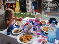 Питание было очень хорошее, за исключением, пожалуй, фруктов. Они хоть и были, но в основном зеленые. Нашего ребенка накормить было не сложно, правда ела она не так много, но голодной не была, т.к. кормят перманентно с раннего утра до позднего вечера. Особенно ей понравились лепешки, которые в обед делала Турецкая бабулька.