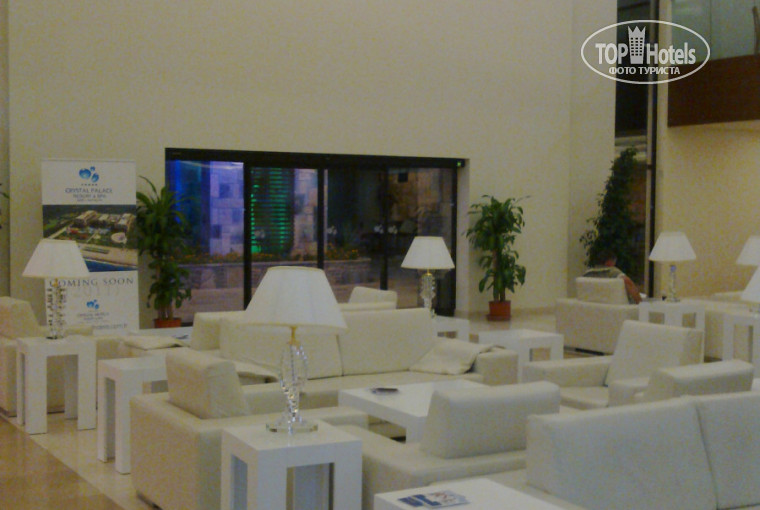 Красивый лобби, беленький, уютный, компактный, приветливые люди на ресепшн. Заселили очень быстро, правда, не с видом на море, но в этом был и плюс, т. к было очень тихо, а те, у кого был этот пресловутый вид , жаловались на громкую музыку.