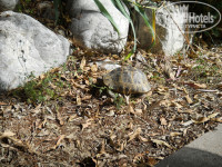 По дорожке до пляжа идти минут пять-семь от гардена. Каждый день курсировал автомобильчик, так что можно было ехать, если лень идти. Два раза видели черепашку у дороги.