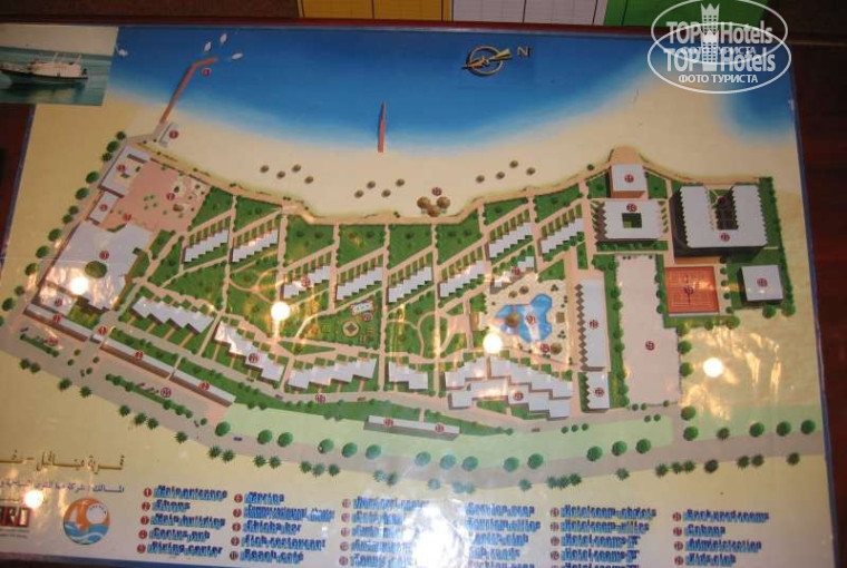 Отель расположен в 50 км от аэропорта,дорога хорошая-трансфер быстрый.С одной стороны отеля сосед Lotus bay c другой пустыня и примерно через 4 км г.Сафага. В город лучше не ездить-сплошное разочерование.В основном отель населен французами,чуть меньше наших,поляков и совсем мало немцев. Тихо,спокойно,зелено.Никто на развлечения силком не гоняет.В главном ресторане напитки подаются официантами,которых не нужно вылавливать и ждать полчаса когда принесут заказ (это очень приятно и понятно тем кто сталкивался с обслуживанием в других отелях Хургады).Осталось загадкой только система всё включено, она тут наполовину выключена.Перечислю что входит во "всё":завтрак,обед,ужин; кофе,чай,кексы с 16.00 до 17.30; напитки с 10.00-24.00 пепси,7-up, миринда, вода, пиво, вино, джин, ром,виски,бренди,водка. Если возникнит желание выпить джин с тоником, то тоник надо покупать.Фрукты за пределом главного ресторана тоже платные, а в самом ресторане только финики и апельсины. Мороженое платно.Но это отдыхать не мешает.Кто-то писал что наших селят в какие-то ужасные номера, а в 800-только иностранцев.Это неправда. мы жили в 826, наши соседи были русская семья,над нами русские,напротив тоже.Номер нормальный и с учетом того что моя семья состоит из 4-человек,всем места хватило.Пляж большой,песок.В море до коралом метров 40,можно дойти-будет по плечи(при росте 164).