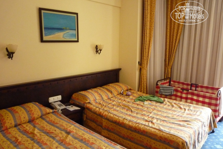 Отдохнули отлично, все супер, со всеми положительными отзывами я полностью согласна. Такое ощущение что лучше и не бывает. В Турции я впервые, да и за границей тоже :-) Правда в первый день когда в жару заселились и нам сказали что на день будут давать 1,5 литровую бутылку воды, то я расстроилась, нам на 4 человек это просто ничего, я бы залпом её всю одна тогда выпила..... Но потом поняла что на территории отеля, много баров и просто мест где можно напиться и воды и всякой разной другой жидкостей.......:-))) Кормили очень хорошо. Мяса много и телятина, и баранина, и индейка и куры, даже моя любимая утка в апельсиновом соусе была. Мясо на гриле и пареное и жаренное. Мне только турецкие сладости не нравятся они все какие то мокрые чем то пропитанные, я и по жизни не сладкоежка. Дочка 10 лет, все на фри да на макаронах сидела при всем изобилии продуктов, она у меня то, то не есть то это, то там лук, то морковка, то еще что...........приходилось с ней повоевать и уговаривать съесть что то еще полезное. Малыш двух лет ест лучше чем она. Он все ест. Были супчики пюре с сухариками, по утрам молоко со всякими колечками и шариками. Брали пачку каши на всякий случай и сухое детское молочко с собой из России, иногда его ели для разнообразия. У них очень вкусные хрустящие блинчики, я бы их сейчас еще поела.Много вкусных соусов, сыров, зелени и прочей вкуснятины У моря крытая песочница, пока малыш строил башни я тут же рядом плавала и наблюдала за ним. Развлекали детей каждый день и днем и вечером, детям очень нравилось, правда не на русском, но и так все было понятно. Мы выграли лотерею, два диска, один с песнями из мини диско, другой про Турцию.Детки наши кушали всегда быстро, а потом бежали на площадку играть, мы могли спокойно доесть и наблюдать за ними со стороны, если правильно выбрать столик. На экскурсии не поехали, так как малой устал от переездов. Только в Аланью разок выезжали такси нанимали за 70$ туда и назад. плюс он там нас везде возил по городу и ждал. Купила себе куртку кожаную у них там цены на этикетках как они говорят для европейцев, а для вас если понравилась вещь то сторгуемся, так куртку по цене 1400 евро сторговали за 250 $. Это я к тому что нужно переводить все на наши реальные цены и торговаться с полной уверенностью, что иначе вам нет смысла брать......При отеле в магазинчике все дорого, крема с собой везите. Рынок что приезжий возле отеля по пятницам тоже дороговат, у нас в России все дешевле если брать шорты шляпу , и прочее..... с ними торгуйтесь раза в 4 могут уступить. Да еще на яхте покатались, видели дельфинов в открытом море. В отеле сходила за 100$ прошла комплекс по уходу лица с чисткой и всеми масками и процедурами на основе какой то французской косметики, мне понравилось. Там еще есть турецкая баня при отеле с массажами за 65$, но сразу не когда было, а потом подгорела и не пошла.....Дочка все на горках пропадала их там много и все разные в двух бассейнах. Мороженное платное шарик 1 $ . Бегло как то так вроде все. Очень там красиво!!!!!!!!!!!Видела как растут гранаты, бананы и прочее.........!!!!!!!!!!! Домики бунгалы красивые аккуратные!!!!!!!! Убирали на ура. Ой забыла сказать у бассейна нужно было с утра занимать часов в 7-8 лежаки, мы после моря с ребенком малым бегали в бассейн ему там нравилось. А у моря лежаки свободны. Много европейцев, даже прикольно было за ними понаблюдать, они все больш