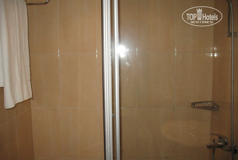 Есть: платный сейф (7 левов в день = 3.5 евро), фен (голимый встроенный), телевизор (4 русских канала), сушилка, столик, прикроватные тумбочки, стулья и стойка на довольно просторном балконе, совмещенный санузел (большая душевая, раковина и белый друг). Из принадлежностей дают по 1 маленькому кусочку мыла, маленькому флакону шампуня.
