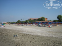 Большой!!!:))) песок-галька, лежаков и матрасов всем хватало, но если хотите выбрать хорошее место, то стоит все-таки занять заранее. В море местами камни, мы купались слева от центральной дорожки, напротив второго ряда тентов, по моему самый лучший заход.