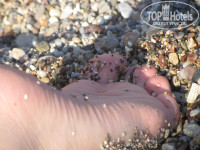 ПЛЯЖ. До него идти минут 5 спокойным шагом по узкой асфальтированной дороге. Ну и что. Справа находится пляж Альдемара, слева – наш. Пляж – мелкая галька, больновато было ходить. Лежаков всегда хватало, часов в 9-10 они еще были. Стоимость 2х лежаков + зонтика - 6 евро вместе с матрасами. Пляж находится в небольшой бухте, волн не было никогда.