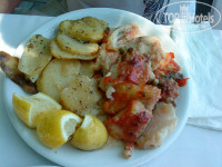 Также хочу сказать в защиту олл-инклюзив, обеды проходили в таверне на улице и были достойные, выбор конечно не велик, но и народу мало на обедах! Тем не менее, всегда был какой-нибудь супчик, по одному виду мяса, рыба и курицы. Из фруктов были дыни, арбузы, персики или нектарины. Голодными не останетесь точно.