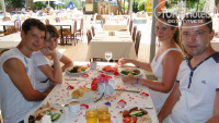 В столовой липкий пол, ходили аккуратно, чтоб не поскользнуться (противно аж пипец просто !) Соевое мясо в различных формах, и сосиски, и колбаски, и котлетки и в салатах и в нарезке и во вторых блюдах, короче я один раз попробовала и потом вообще ничего с этим не ела, гадость редкостная. Из съедобного: свежие огурцы и помидоры, листья салата, один/два вида сыров, если есть рис и картофельное пюре, из мяса, курица и рыба на вертеле в основном на ужин и яйца, жаренные на завтрак. Кто-то сказал, что там вкусные булочки (!), ну это кто любит булочки из пельменного теста, тому понравиться, а по мне так лучше кусочек их хлеба отрезать, он точно сдобный и вкусный ! особенно с персиковым вареньем )))) и все ! Десерты - катастрофа !!! Вообще у меня сложилось впечатление, что деньги из путевки, предназначенные на питание турки поделили на 4 и нас кормили на 1/4 этих денег, ну потому что такое "Г" не может столько стоить !!! Пока ешь, каждую минуту возле твоего столика проносятся официанты с помойной тележкой и весело собирая у всех тарелки вытряхивают недоеденное. Может кому-то и пофиг, но мне неприятно было.(((((