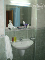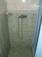 Ванная.Оставляет желать лучшего.Кафельные стены там тоже не моют.Отчёливо видны пятна от рук и размывы.Возле урны в ванной на кафеле пятна,красные кровянные брызги.Малоприятное зрелище...Крышка на унитазе старая,раздолбанная и полусломанная.Кое-как держалась на унитазе.Душевая кабинка смешная.Просторная и вся из кафеля.Но шторка-плёнка только с одной стороны и держится она скорее на честном слове...Короче,мокрый пол во всей ванной после душа вам гарантирован!Воду нужно убирать иначе не фиг делать подсользнуться на лужах.Сместитель в душевой допотопный и дырки душа закупорены.Вода кое-как проходит.