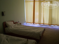 Мебель в номерах очень дешёвая и допотопная.Всё скрипит,шатается и разваливается.Шкаф-купе в прихожей у нас не закрывался и не открывался.Двери этого шкафа на шинах,которые деформировались.Пришлось держать одежду в постоянно открытом шкафу.Шторы на окнах простые и короткие.От света они практически не защищают.