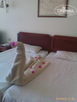 Нас размещали поздней ночью, с поиском автобусов проблем не возникло. Поздний ужин для вновь прибывших отдыхающих и туристов с долгими экскурсиями предусмотрен. Разместили довольно шустро, как и попросили, с видом на море, получился 3й этаж. Данная услуга для нас оказалась совершенно бесплатна. Зато нас, как пару, разместили в номер с двумя кроватями! Учитывая, что пол выложен кафельной плиткой, это сильно не помогло... Тех, кто любит посидеть на балкончике хочу предупредить: охлаждая комнату кондиционером, не советую за собой захлопывать балконную дверь, ручки с улицы нет!.. Придется изъяснять соседям, что Вы захлопнулись или взламывать дверь! Очень пренеприятно, поверьте!