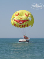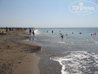 Море и пляж. С лежаками проблем не было. Вход в море достаточно плавный, немного затруднен полосой мелкой гальки шириной метра полтора. Есть где поплавать - расстояние до буйков не меньше 50 метров. В первой половине дня море, как правило, было спокойным, во второй половине - волны. Один раз воспользовались услугой по катанию на парашюте над морем, летали вдвоем с ребенком (за 80 евро, если один человек - 50 евро), понравилось.