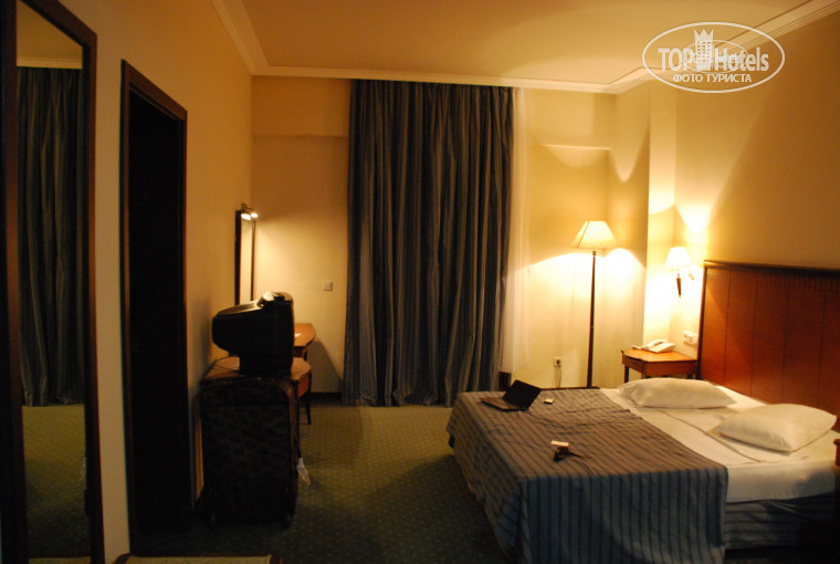 Отдыхали с 07.09.2011 г. по 13.09.2011 г. Это был очень ужасный горящий тур, никогда не связывайтесь с Альянс туры.ру на Таганской. Из 6 отелей пришли отказы и вот наконец-то думали, что летим как нам сказали в алара парк, но в аэропорты выяснилось что в алара кум. Да и еще и с билетами не повезло, заселились туда только в час ночи, а выселились в 3 ночи, соответственно потеряли в днях, но это не суть. Не зная об отделе вообще не чего, когда автобус свернул с 1 береговой линии на вторую мы очень разозлились. Приехав в отель мы сразу стали требовать номер с большой кроватью и с видом на море :) Ну конечно же таких номеров не оказалось и нам дали 1601, на 6 этаже с видом на море. Номер конечно был не плох: большая кровать диван, есть даже вторая комната с кроватью для детей, большой балкон, если его перешагнуть можно гулять по балкону крыши. Номер дали до 12 часов, дальше я что то не понял, что на рецепшене от нас хотели, но как я понял доплату 10$ в сутки за номер. В итоге с помощью отельного гида договорись и за 30$ номер нам оставили. О номере могу сказать, что плохо работал кондей и в номере были муравьи, стоит только чего то липкое пролить на столик и все понеслось - табун муравьев вылезает из под плинтуса и бегут все как на водопой :) Очень много комаров. Номер убирался каждый день. О В отеле очень часто выключался свет и многие бывало застревали в лифтах, так же бывало что напор воды в был очень слабоват и с горячей водой проблема. Отель скорее подходит для отдыха с детьми, уж очень скучно там, для детей там есть 2 бассейна и 2 горки. Территория отеля очень маленькая особо не погуляешь. Пляж хороший идти не далеко, но местный, любой житель может занять лежак. Еда в отеле так себе выбор небольшой, на завтрак можно вообще не ходить есть практически нечего и очень все однообразное. После 12 когда все бары закрываются в лоби просто сесть негде, так что туда можно приходить только после 2-х. Не хватает в отеле очень музыки. Не советую этот отель если вы едите с девушкой со скуки умрете.