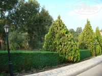 Территория: огромная, с эвкалиптовыми и оливковыми деревьями.