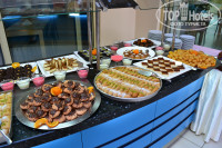 Еда. Кормили, думаю, отлично. Бывалый народ говорил, что не во всех пятизвездочных отелях так кормили. Выбор был довольно большой. По вечерам всегда делали барбекю. Мясо в основном курица, иногда была индейка и баранина. По средам был рыбный день. Рыбу жарили, готовили на барбекю, коптили и пр. Очень вкусно. Сладостей большой выбор, особенно нам пахлава понравилась. Но ее готовили в основном по воскресеньям, а в другие дни если оставалась. В воскресенье – турецкий день. Много блюд турецких. И вот к этому дню и сладостей свежих готовят. Много зелени, овощей. Салаты явно из того, что было раньше сделано. Но безотходное производство практически везде сейчас, так что кому как. Из фруктов – арбуз, дыня, яблоки, сливы, виноград. Мороженого не было.