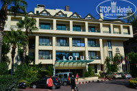 Отель находится непосредственно в Кемере. До центра минут 5 не спеша, походить по городу можно, много магазинчиков. Территория отеля небольшая, но в принципе все ухожено, чистенько. Пляж тут же, через пешеходную дорожку. В отеле в основном русские и немцы, вроде были турки и норвежцы еще. По всему отелю висят роутеры, с wi-fi проблем не было. Раскрываю тайну для будущих гостей отеля, пароль для вафли – gldlt. Но пароль дадут на ресепшене бесплатно, если попросить. Отель стоит в первой линии, есть открытый бассейн с пресной водой и закрытый бассейн с соленой.