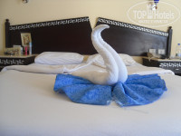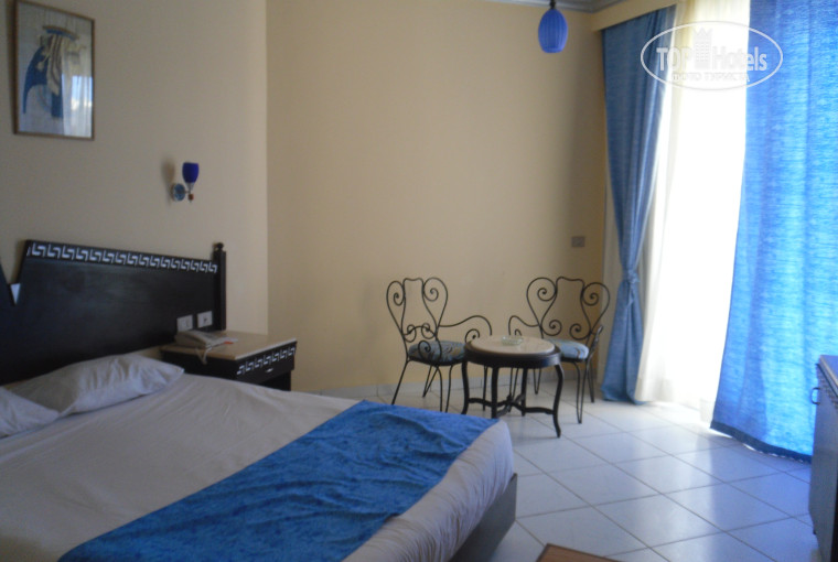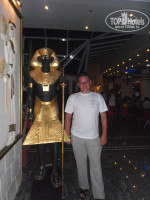 Долго выбирали сначала город куда полететь, потом отель. Остановились на KING TUT т.к. был адекватный ценник и судя по отзывам (кстати, часто противоположно отличащимся, но хоорших было больше). В принципе - все понравилось. Отель чимпатичный. Фойе и ресепшн сделаны красиво, чисто в египетском стиле :) . При размещении сразу дают номера, балкон которых выходит на соседнюю стройку. За небольшую денежку заселят в хороший номер, с видом на бассейн, на отель "Сфинкс" и кусочек моря :). Номера уютные, ничего лишнего. И все необходимое есть. Когда заселились - плохо закрывалась дверь в сан узел. Никого не вызывал, но дверь как то починилась :) Думаю что при уборке номера они сами все проверяют. Номер убирают каждый день, из полотенец делают всякие красивые фигуры. Пару раз оставили по доллару. Паренек веселый и приветливый который убирает, несколько раз сталкивались с ним в корридоре. Питение - многие пишут что нет разнообразия. По мне - не знаю что еще нужно, чтобы было разнообразнее. Супы всегда 2 вида (правда на вкус не очень, но у кого язва желудка или что то похожее как у меня, то похлебать можно), гарнира вида 2, овощи тушеные всегда, салатов видов 5, мясо, морепродукты. Мне питание понравилось. Спиртное все местное, не крепкое, пить можно. Попробовал их водку - 2 стопарика и я в ауте. Из за жары наверное. Думаю поэтому у них и ром и виски не крепкие. Море - СУПЕР!!!! Есть песчаный пляж, там глубина небольшая совсем. В основном там дети плюхаются. Со ступенек вход в море - дно каменистое, метра через 3 начинается глубина большая. Зато там плавают стаи рыбок, очень красивые. Мы с Минска взяли с собой подводные очки, думали пары на двоих хватит понырять :) В итоге купили 2 маски с трубками по 8 долларов в магазине напротив отеля. Получилось дешевле чем у нас - по 64 тыс грубо говоря. У нас в магазах больше 100 тыс. И потом просто ложились на воду, и балдели от подводных видов. Несколько раз кормили рыбок на пляже, если будете кормить - то аккуратно, они нетерпеливые, могут булочку прямо из рук утянуть :) Анимация - КЛАСС. Не дают тупо лежать на пляже, утром - зарядка, потом аквааэробика, потом потом танцы живота или латино дэнс - что то такое. Вечером хорошая программа. Экскурсии брали не у тэз тура, на пляже. Сафари брали у Ислама - приятный парень, на пляже работает. Жена у него кстати из Случка :) Дайвинг брали у Руслана. "Русланчик - не обманщик" :) Все прошло хорошо, без проблем. ОЧЕНЬ ПОНРАВИЛОСЬ!!!!!! Если поедем еще в египет - то в этот отель!