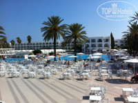 Нас поселили в бунгало 246,247,248.Удачное расположение номеров относительно моря,бассейнов и ресторана.Друзья хотели поменять на номер в основном здании,но после предложенных вариантов решили остаться в бунгало.Заселение в 12,00.Обычный номер с купольным потолком,всё исправно работало,полотенца меняли каждый день,постель раз в три дня.Никаких насекомых не наблюдали!!!В номере две раздельные кровати и одна совмещённая.Анимации на Русском нет.Но нам это не мешало,потому что и так интуитивно всё понятно.Питание хорошее, всегда было несколько видом мяса,жарили креветки,рыбу,филе индейки,курицу на гриле.Днём и вечером в баре готовили пиццу.Очень вкусные сладости.Из фруктов виноград,персики,яблоки,сливы,дыни.Вино трёх видов,сухое, за обедом и ужином,в неограниченном колличестве.Чаевые официантам и уборщице давали через день по 1 динару(23 рубля). Стол официант нам резервировал всегда!Контингент отдыхающих в основном европейцы,немцы,французы,итальянцы,англичане,поляки и наши дорогие земляки,которые к слову не всегда вели себя достойно.