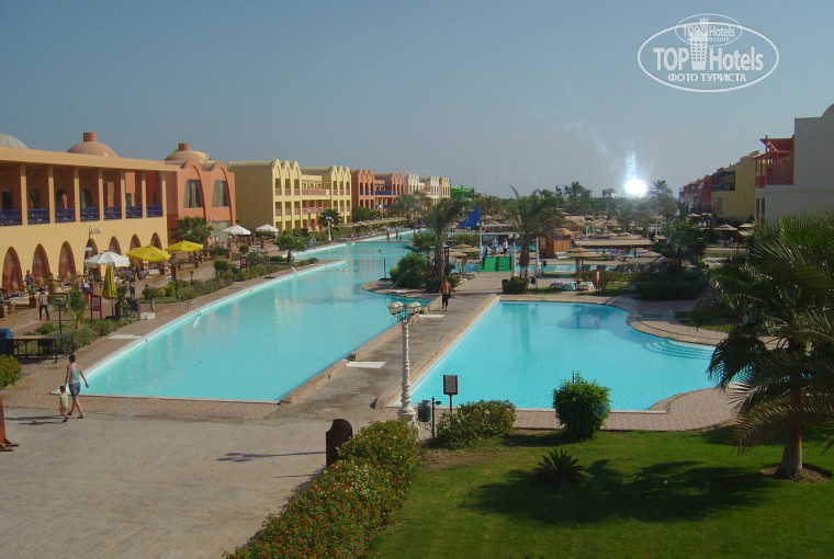 1) Территория. Довольно большая, и ухоженная. Зелени достаточно. Огромный бассейн, возле которого много лежаков. На горках в аквапарке не катались, но народ развлекался, детей много.