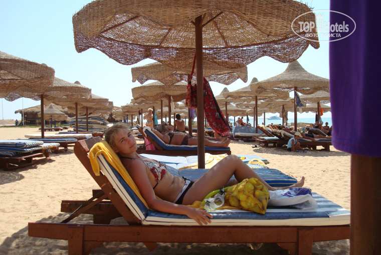 Поселение: приехали около 13.30, поэтому после заполнения анкеты поселили в номер сразу (заселение в 14.00). Трое взрослых. Двухместный номер (очень просторный, Standart) + удобная широкая раскладушка с ортопедическим матрасом. Видела фото в интернете на тему отсутствия ремонта в отеле, в поездке не видела, наверное поремонтировались. Хотели поселить в первом корпусе, но я сказала, что хотелось бы, чтобы было не очень шумно (дискотека до двенадцати под окном и т.д.). Поселили в третьем корпусе. Не доплачивали. Окна выходили на недействующую стройку, но в середине дня с этой стороны была тень. Сейчас там стройки есть возле первого и третьего к. Просторный балкон. Еда: курица (еще какая-то птица - не помню), говядина , рыба, дыни, арбузы, гуава, виноград, финики, изюм, яблоки, много овощей и зелени, йогурты, молочный и русский супы, восточные сладости и большой выбор тортов и пирожных, сыр фета. Фреши - 2$, гуавовый (очень вкусный) - 3$, манго (порежут) - 2-3$. С 12.00 до 16.00 возле пляжа дают беслпатное мороженое разных видов. На улице - на завтрак могут тут же пожарить яичницу, оладушки. Бассейны (их два): кроме лестниц вертикальных есть со стороны детской части или просто мелкой ступени в воду. Пляж: пальмы с финиками почти на пляже. Пляж регулярно убирали. Везде пепельницы и урны в виде керамических горшков и амфор. Наш народ все равно норовил кинуть окурок мимо, но персонал ходил и собирал. В шесть утра уже кто-то может прийти на пляж - занимать места возле самого моря, но топчанов вроде всем хватало. Заход в море..ну можно сказать что он пещаный. Босиком можно, но неочень удобно. Спецобувь в магазинчике на территории отеля - 2 пары - 10$. Далеко мелко - детям было хорошо и интересно. Взрослым тоже. Кораллы - местами, рыбы есть, не очень много, но разные. Видела кальмаров, аротронов, рыбу-клоуна, крылатку(!), рыбу-пикассо, рыбу-попугая, рыбу-бабочку, рыбу-флейту ит.д.... ну, так они называются! Морские ежи есть, но только в кораллах. Территория: приехали 10 сентября на 10 дней. Вся территория цвела. Все пальмы были в финиках. Очень красиво. Не люблю когда пальмы собирают (связывают листья). Гуляли не только по территории нашего отеля, а и по всей бухте и длинному пирсу. Ну.., наверное минусы: на мой взгляд маленький выбор коктелей; брали джин с тоником; вино было не вкусное, пиво ничего. Освещения территории отеля мало (когда темнеет - темновато, а это уже в 19.00) Рестораны: русский, французский, мексиканский, кажется монгольский и платный рыбный. Была в мексиканском - не очень понравилось. Лучше наверное в рыбный. Минус для кого-то: почти все туристы - русские. Туроператор - Пегас. Экскурсии организованы хорошо. Отдых был замечательный! Буду рекомендовать этот отель. Знаю людей, отдыхавших здесь. Тоже хвалят. В Египте была в первый раз.