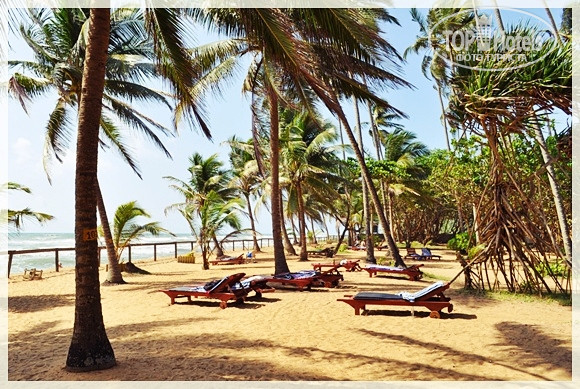 Кстати. Отель огорожен со всех сторон. Местных жителей на территорию не пускают, от этого везде очень спокойно. Лежаки находятся на песке под пальмами, но чтобы выйти к океану надо пройти в калитку, которая тоже охраняется военным. Это не напрягает совсем, т.к. заборчик символический, на фото его видно, это просто сетка, поэтому вид с лежаков на океан прекрасный, зато знаешь, что местные жители на территорию не попадут, это плюс.